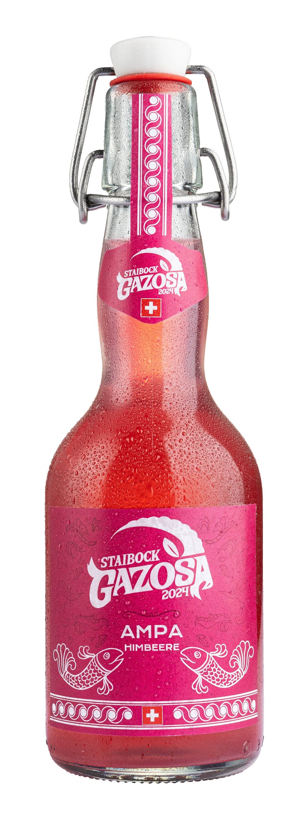 Erfrischungsgetränk mit Himbeergeschmack Zutaten: Wasser, Zucker, Kohlensäure, Himbeersaftkonzentrat, Säuerungsmittel Citronensäure, natürliches Aroma, färbende Lebensmittel (Konzentrate aus Süßkartoffel, Rettich, Apfel, Karotte und Saflor), Stabilisatoren (Gummi arabicum, Glycerinester aus Wurzelharz), Natürliches Konservierungsmittel: Pilzextrakt (enthält Glykolipide).